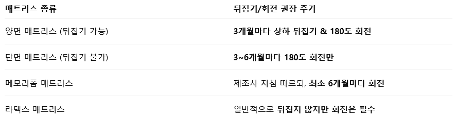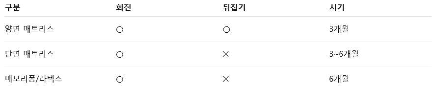 ✔️ 매트리스 방향 관리 요약